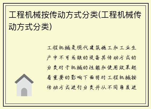 工程机械是现代建筑施工和工业生产中不可或缺的设备,其传动方式的分类对于机械的性能和使用效果起着重要的影响。下面将对工程机械按传动方式进行分类,并从不同角度进行详细阐述。